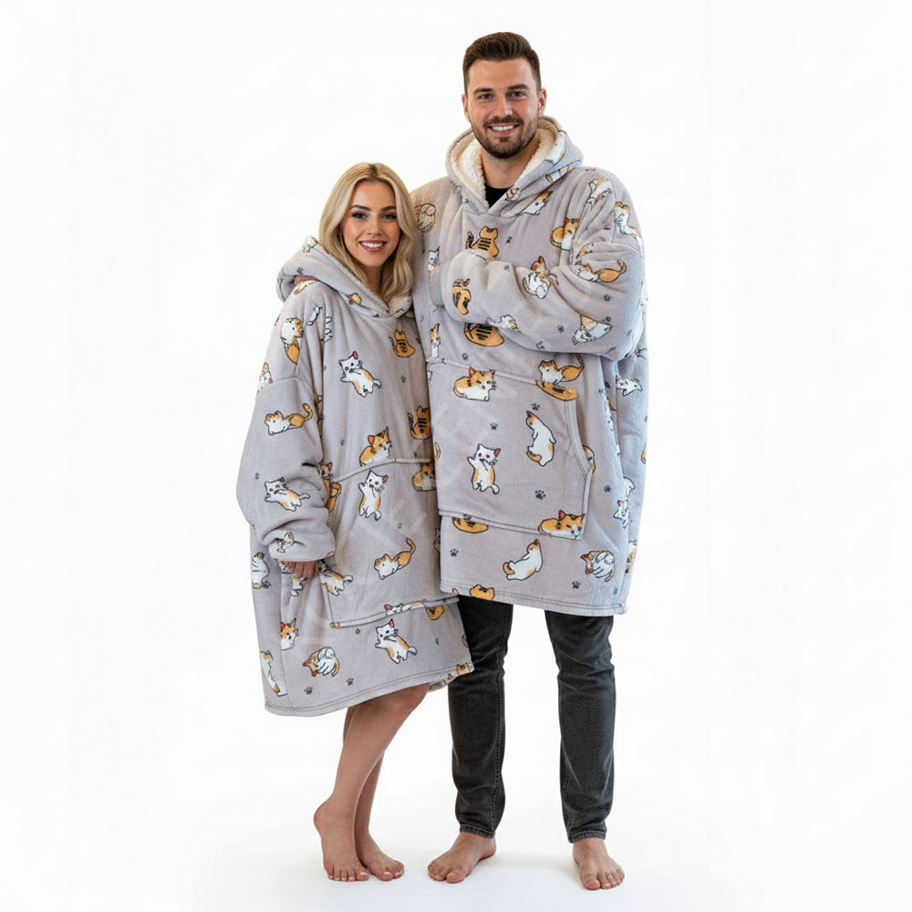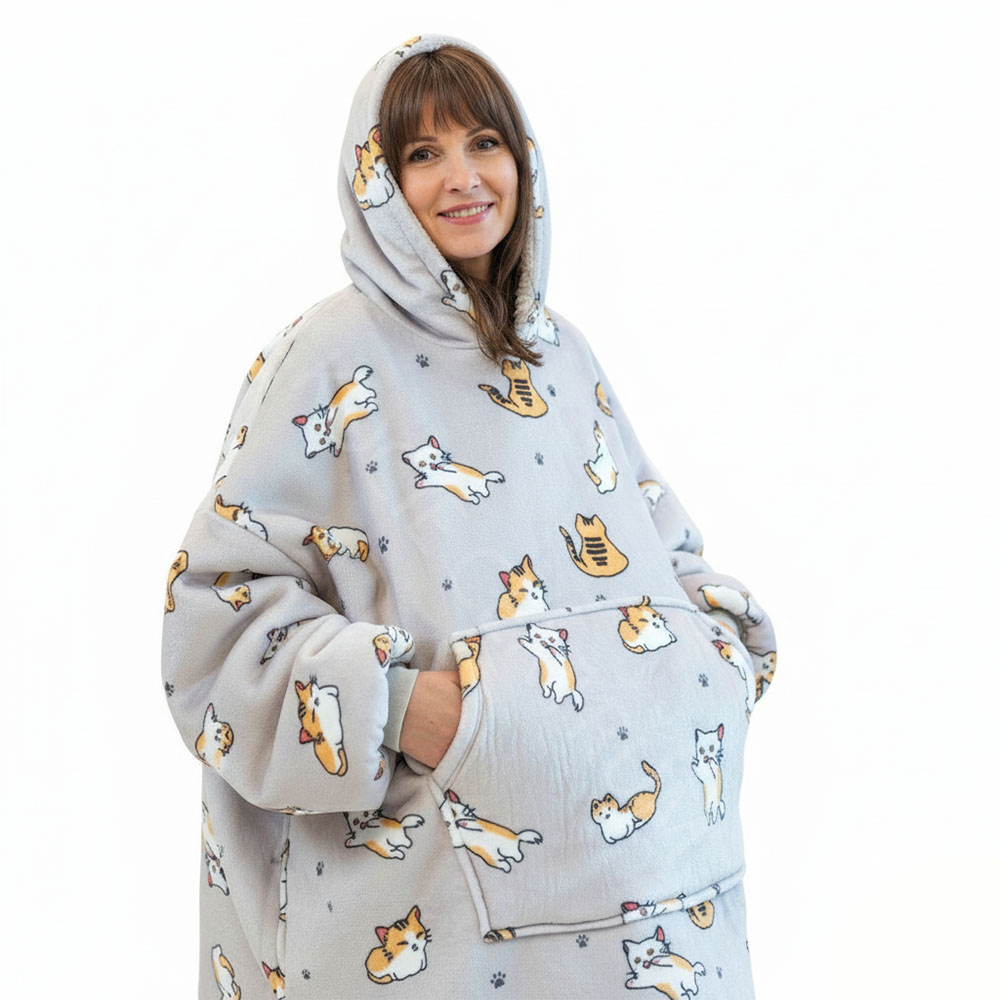 Znasz ten moment, gdy chcesz się opatulić kocem, a po chwili musisz wstać po herbatę czy przekąski? Zwykły koc wtedy zsuwa się z ramion, a szlafrok bywa za cienki i mało praktyczny. LazyCat łączy najlepsze z obu światów – otula całe ciało jak koc, a jednocześnie możesz w niej swobodnie chodzić, gotować czy bawić się z kotem. Komfort zawsze z Tobą, bez marznięcia i poprawek co chwilę.