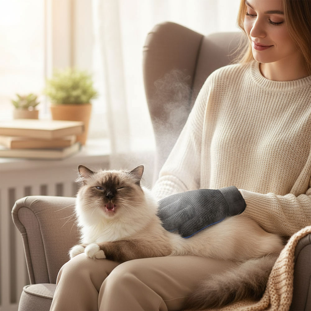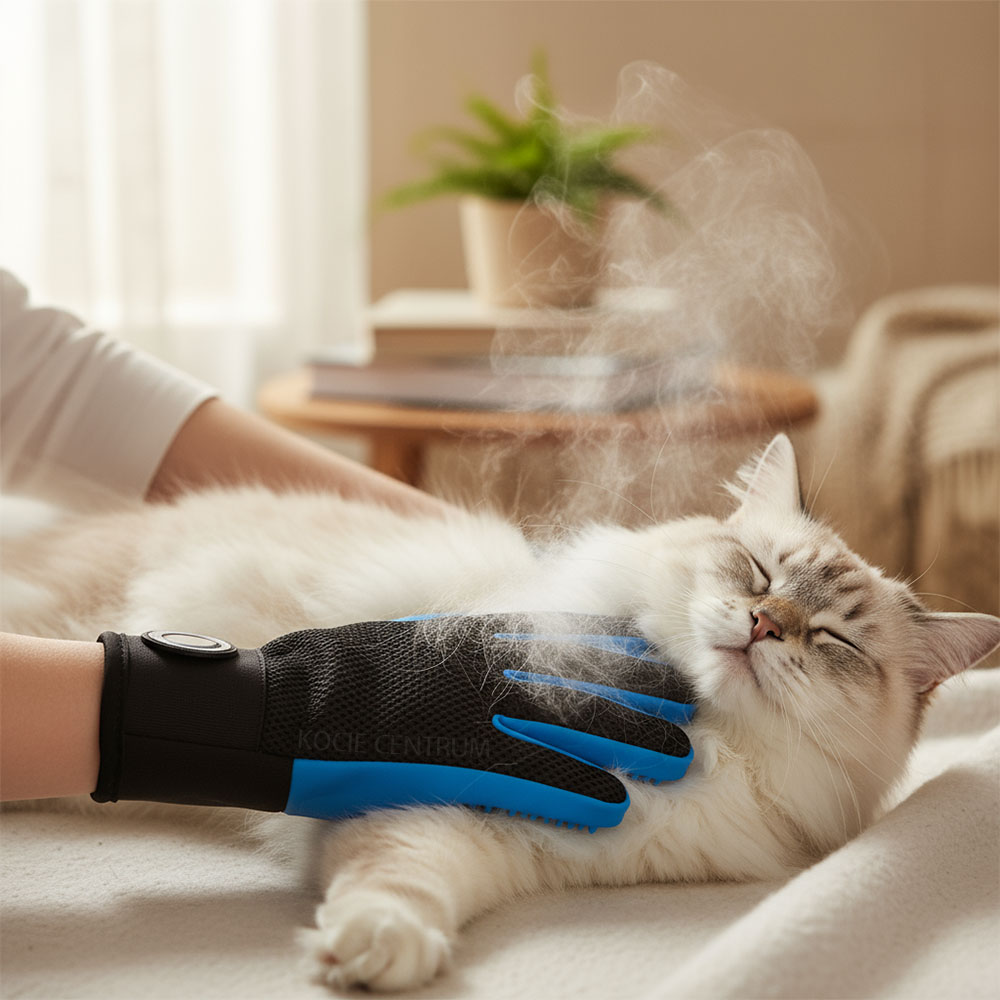 Poznaj Rękawicę Parową SoftMist dla kota – elektryczną rękawicę, która podczas głaskania wytwarza delikatną chłodną mgiełkę. Dzięki wbudowanemu spryskiwaczowi każdy ruch dłoni zbiera luźne włosy, ogranicza unoszące się kłaczki i koi skórę pupila. To szybki sposób na czystą, miękką sierść bez kąpieli i stresu – pielęgnacja, którą pokochasz Ty i Twój mruczek.