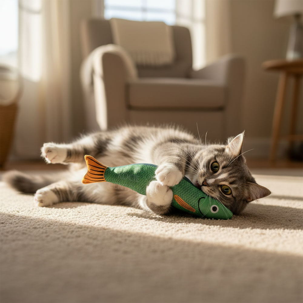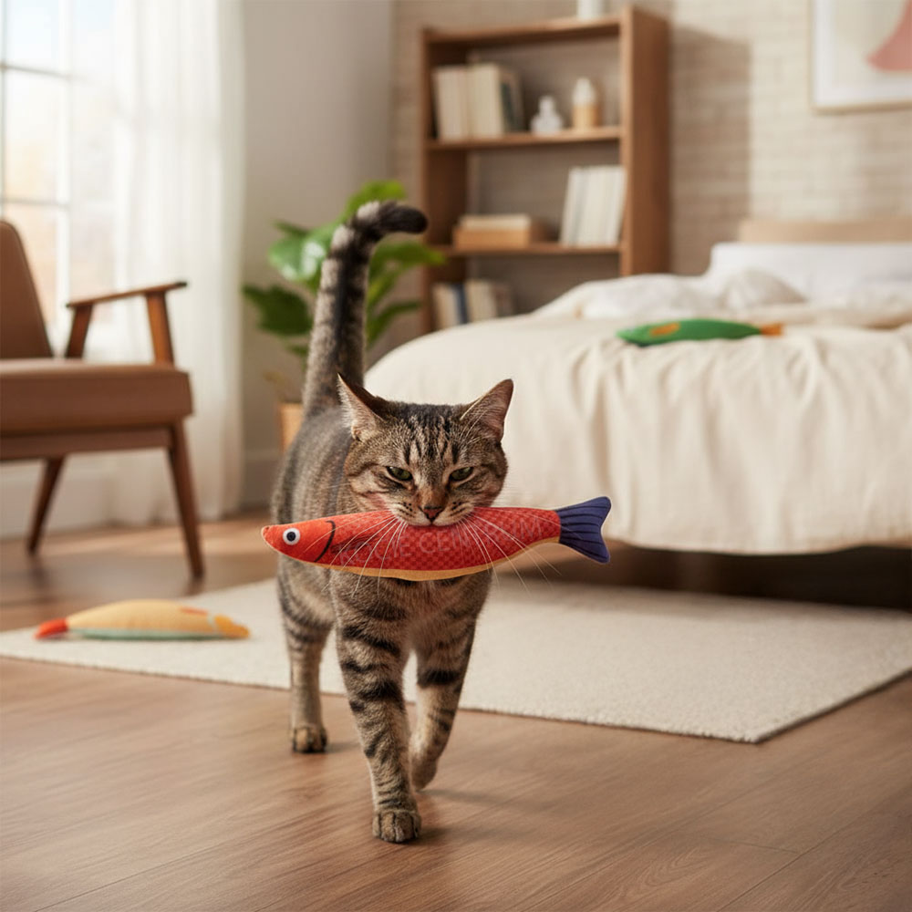 Wiele kocich zabawek po prostu nie wygląda najlepiej, kiedy leżą porozrzucane po mieszkaniu. Rybka Szczęśliwego Kota to wyjątek – kolorowe rybki są estetyczne i wyglądają raczej jak małe dekoracje niż bałagan. Co więcej, są miękkie i lekkie, więc kot może je nosić po całym domu i chować w ulubionych zakamarkach. Nie zdziw się, jeśli znajdziesz jedną w butach, na łóżku czy pod biurkiem – to znak, że Twój kot naprawdę pokochał swoją nową zabawkę.