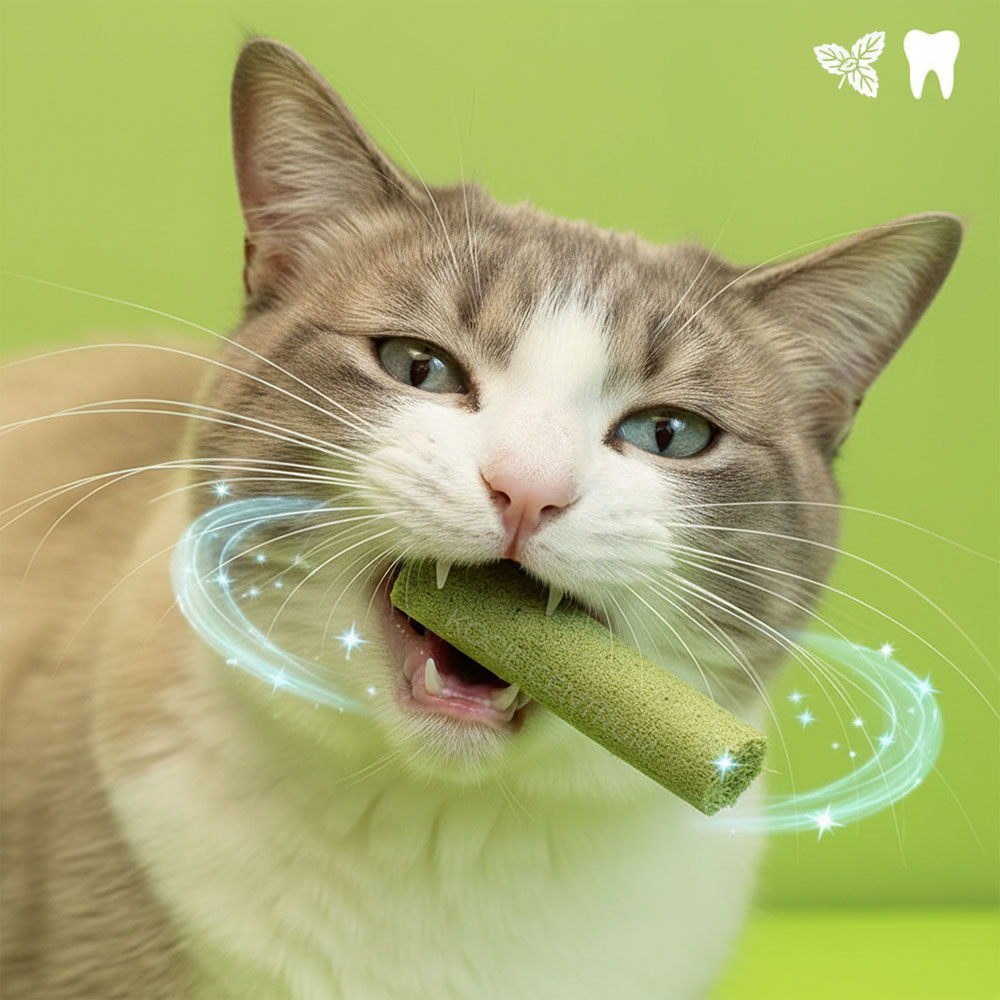 Czy wiesz, że u większości kotów z czasem pojawia się kamień nazębny i nieświeży oddech? Trawiaste Pałeczki dla Kota działają jak naturalna szczoteczka – żucie ich pomaga usuwać płytkę nazębną i delikatnie masować dziąsła. Twój mruczek nie tylko będzie miał zdrowsze zęby, ale i świeższy oddech, a Ty unikniesz nieprzyjemnych wizyt u weterynarza. To prosta przekąska, która na co dzień wspiera zdrowie jamy ustnej Twojego pupila.
